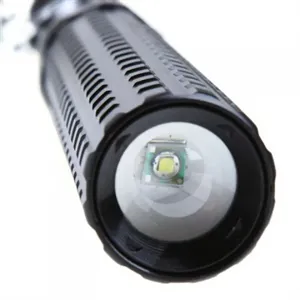 Introducing our aluminum flashlight with XPE light resource, illuminating up to 200 meters. Designed with a tail switch, frog eye lens, and scalable focus. Suitable for one 18650 battery, featuring three lighting modes. Quality, unique, and collapsible for versatile use. Ideal for adults in all outdoor environments, serving as a tool for light, home security, patrol, and self-defense. Dimensions: 12.17"L x 1.3"D. Experience quality and functionality with this multi-purpose flashlight!