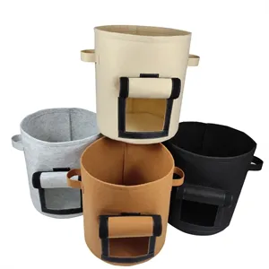 Enhance your gardening experience with our 5-Gallon Vegetable Grow Bag, crafted from breathable felt fabric promoting healthier root growth and increased yields. Minimize transplant shock and foster a robust root structure. Equipped with heavy-duty handles and rugged material for easy relocation of soil and plants. Experience optimal temperature control as these bags keep plants warmer in winter and cooler in summer. Reusable for years, they provide a sustainable gardening solution. Customizable sizes are available to meet your specific needs. Dimensions: 9.06" W x 11.2" H. Elevate your gardening with these durable, breathable, and eco-friendly grow bags.