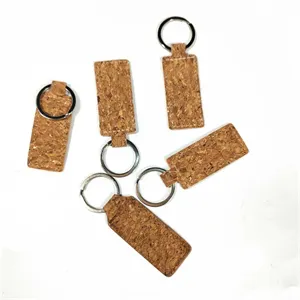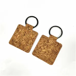 Cork Wood Rectangle Keychain