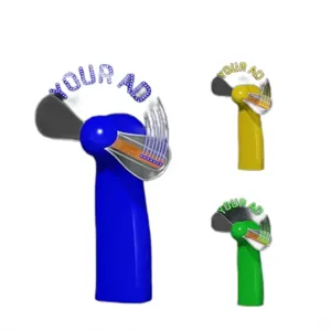 Capture your customer#039;s attention with this eye-catching portable fan made of ABS case and soft plastic blades. Whether you#039;re studying at school or working in the office, enjoy a cool and comfortable breeze. The fan, powered by 3 AAA batteries (not included), features a unique touch - it flashes your company#039;s logo on the blades. The LED colors of the logo include Red, Blue, and Green. Compact in size at 4.3" L x 1.38" W x 2" H, this fan is a promotional powerhouse, providing both functionality and a visually engaging way to showcase your brand.